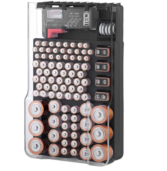 This plastic case keeps all batteries visible and in one place. The built-in tester ensures that the batteries you’re holding onto are the ones that actually work, not the dead ones you forgot to toss. It holds up to 110 batteries and helps prevent the scattered battery collection that seems to multiply in random drawers.