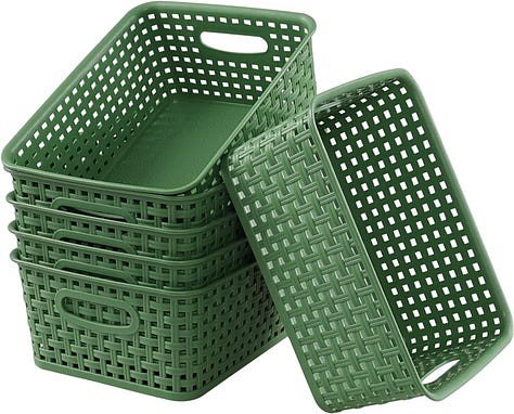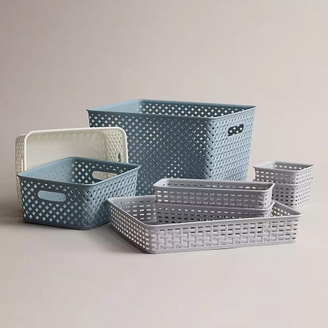These trays can help contain those mini "drop zones" in drawers, on counters, and, in my case, inside the coffee table. They contain the clutter while keeping items visible and accessible. If something gets full, I know it’s time to declutter.